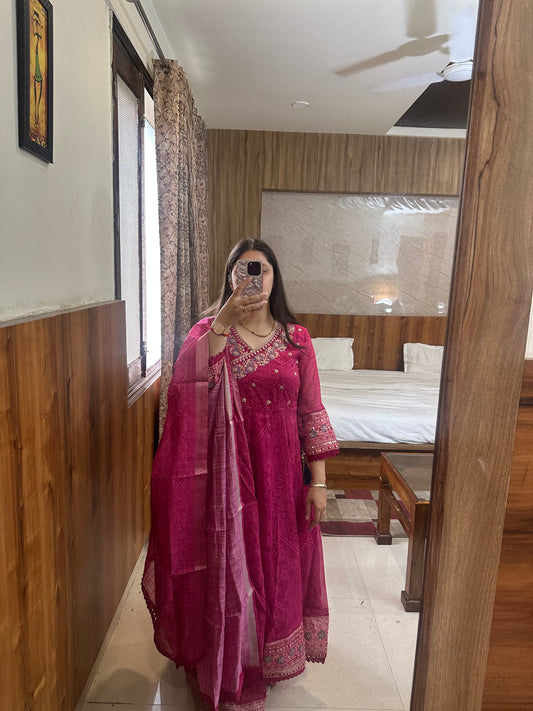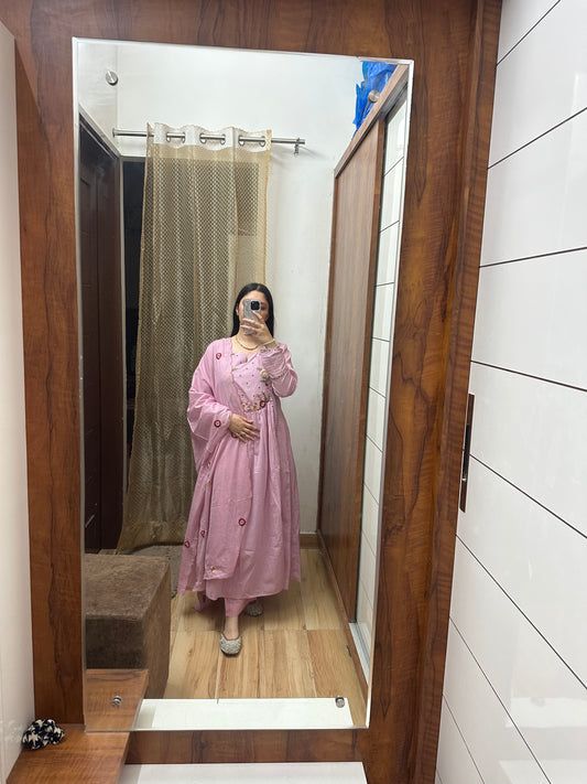 Elegant Pink Embroidered Anarkali Suit Set
