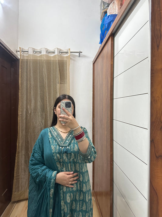 Elegant Teal Green Anarkali Suit Set with Dupatta – Traditional Indian Ethnic Wear