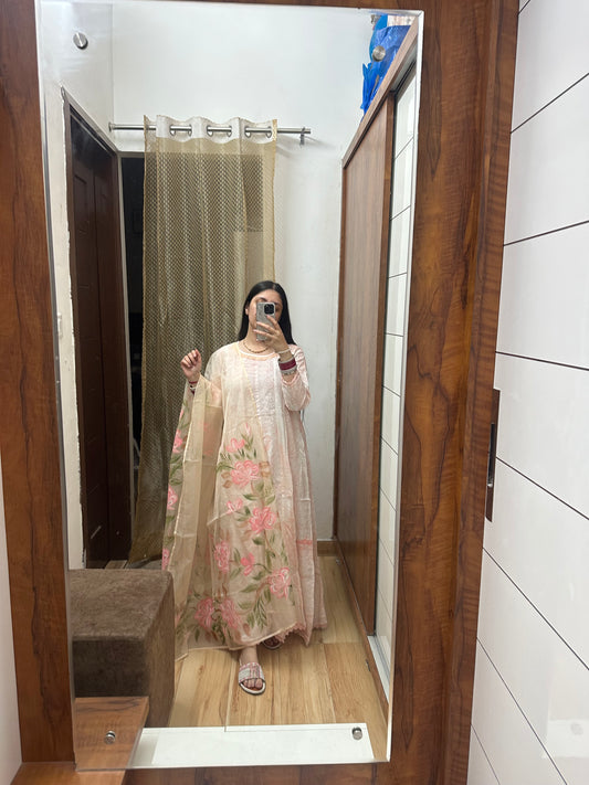 Elegant Floral Embroidered Anarkali Set