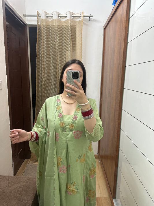 Pastel Green Floral Kurta Set with Dupatta