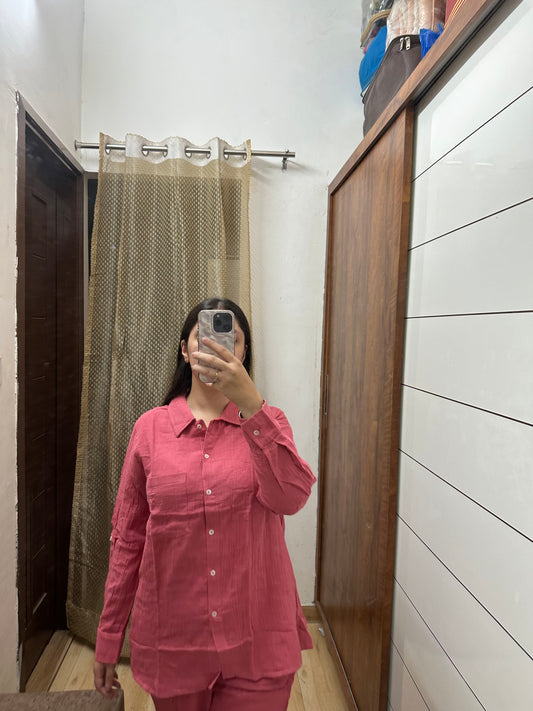 Solid Pink Cotton Coord Set for Women | Casual Summer Wear | Vaani Sethi Collection