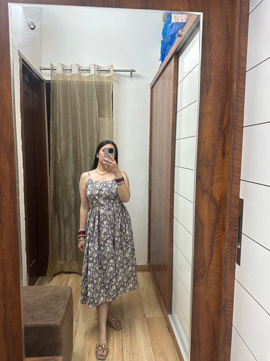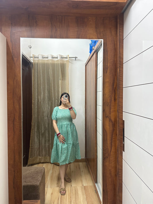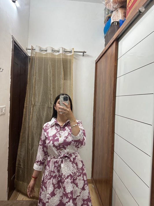 Stylish Floral Printed Cotton One-Piece Dress – Perfect for Casual Elegance