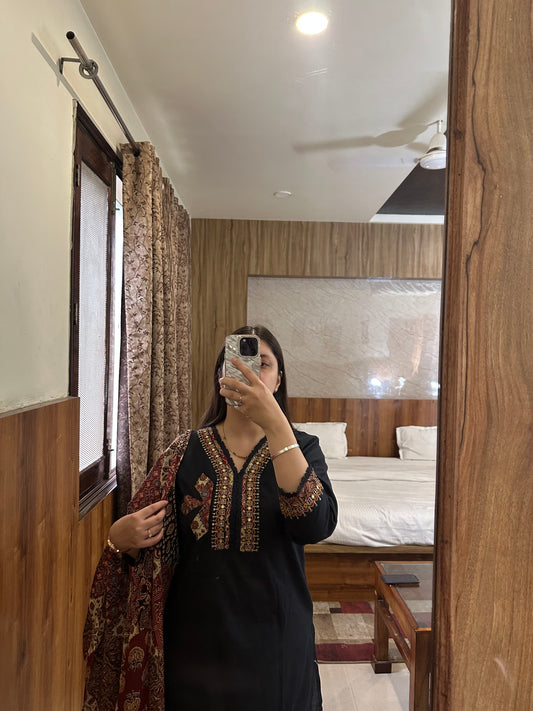 Elegant Black Printed Suit Set with Dupatta