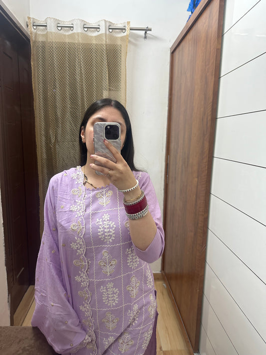 Lavender Embroidered Kurta Set