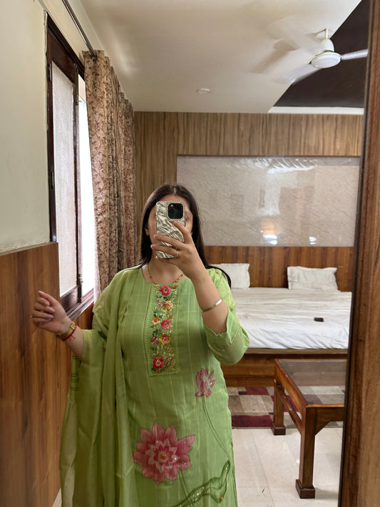 Pastel Green Handpainted Suit Set