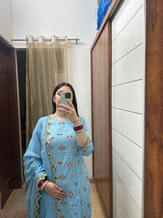 Elegant Sky Blue 3-Piece Embroidered Suit Set