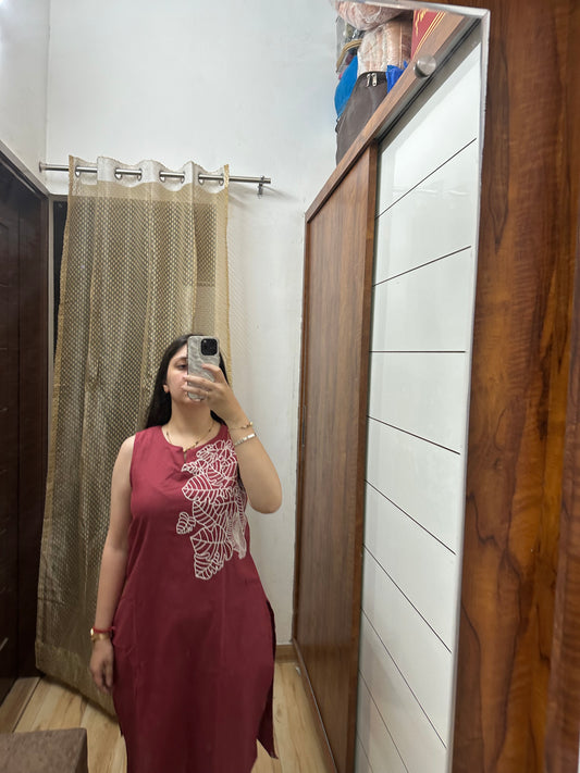 Maroon Sleeveless Coord Set with Embroidered Detail