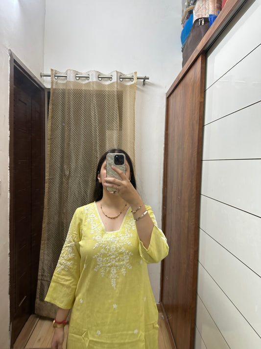 Sunlit Yellow Cotton Kurta Set with White Thread Embroidery