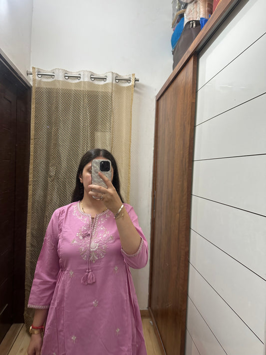 🌸 Blush Pink Embroidered Kurta Set with Pintuck Detailing