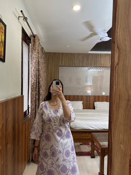 Handblock Printed Khadi Cotton Kurta Set (No Dupatta)