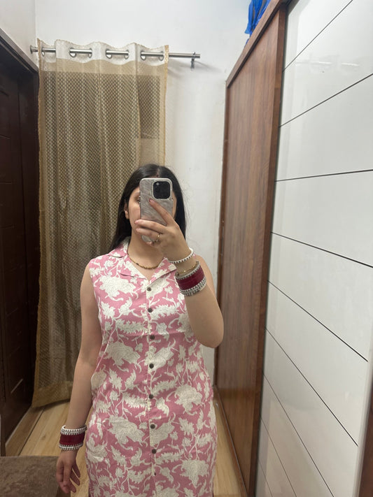 Pink & White Floral Collar Style Kurta with Pants – Elegant Co-Ord Set